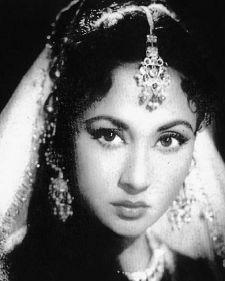 Meena Kumari was born Mahjabeen Bano on Aug 1, 1932 as the third daughter of Ali Baksh and Iqbal Begum (her mother was born a stage dancer and actress, a Hindu, related to the Tagore family of Bengal). Her father was a small-time musician (who composed for a few films) , actor and a poet. Mahjabeen Bano made her debut as Baby Meena at the age of 7 in a Vijay Bhatt film in 1939. It was in a Vijay Bhatt movie at the age of 20, she was to gain fame as a heroine. The movie was Baiju Bawra, for which she won the Filmfare Best Actress Award. This set the tone of her future career, in which she gained much success playing the silent, suffering woman, be it Parineeta or Dil Apna Preet Parayi or Dil Ek Mandir. But the role she is known best for is that of ‘Chhoti Bahu‘ in the Guru Dutt classic Sahib Bibi aur Ghulam, considered one of the finest performances in Hindi cinema.