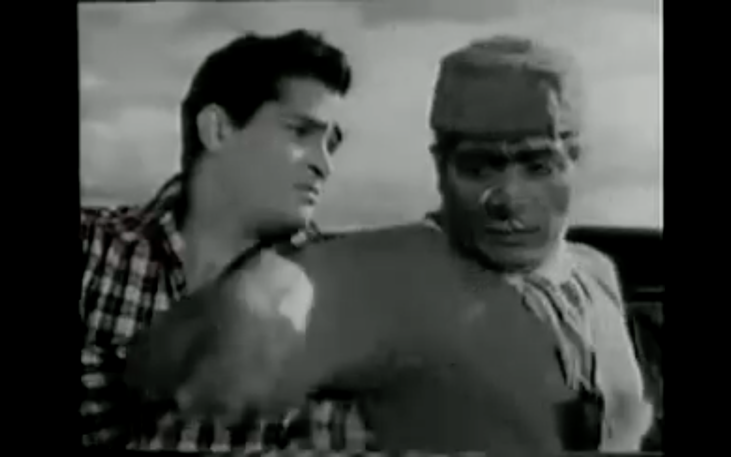 Her bag gets stolen at the station, barely five mins after her running away and she runs behind the culprit, a charming petty pickpocket, Billoo (Johnny Walker). The purpose of this scene is to get her out of the station. She comes to a crowded circus, in search of the bag and the thief, and voila, she finds it.
